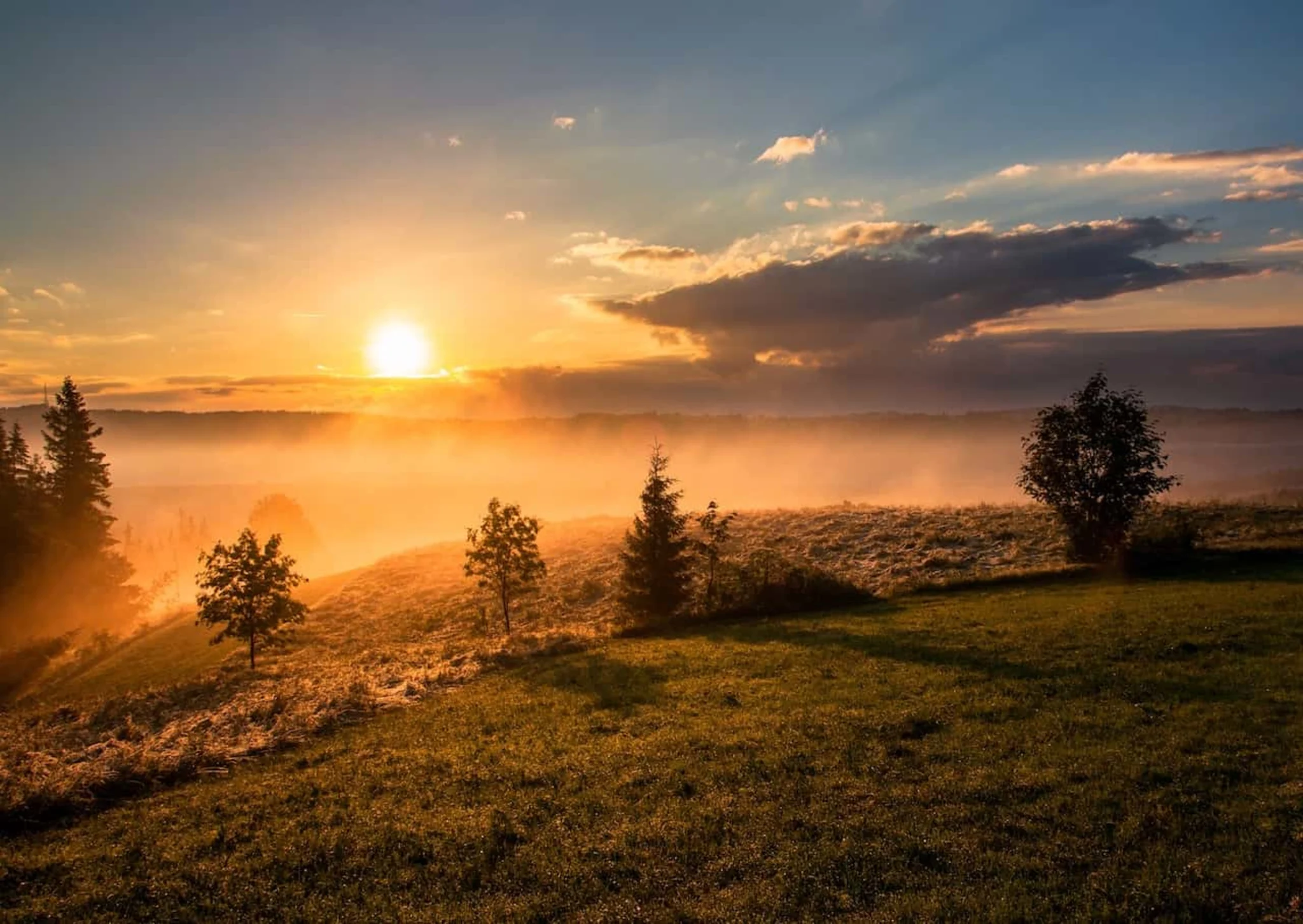 - Highlight: A dreamy sunrise with a view of mist-covered hills.